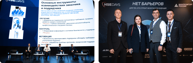 Выступаем партнёром VI ежегодного форума HSE DAYS в Москве и проводим сессию на тему «Безопасный подрядчик: партнёрство на всех этапах взаимодействия». Среди спикеров — представители компаний «Металлоинвест», «ОТЭКО», «ЗАРУБЕЖНЕФТЬ-добыча Харьяга».