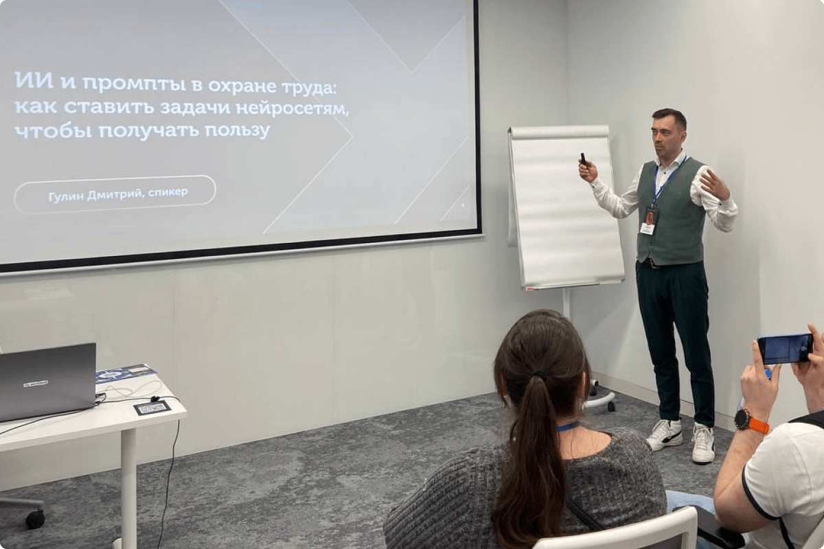 Наш директор по производству Дмитрий Гулин выступил с докладом «ИИ и промпты в охране труда: как ставить задачи нейросетям, чтобы получать пользу». В ходе выступления мы: