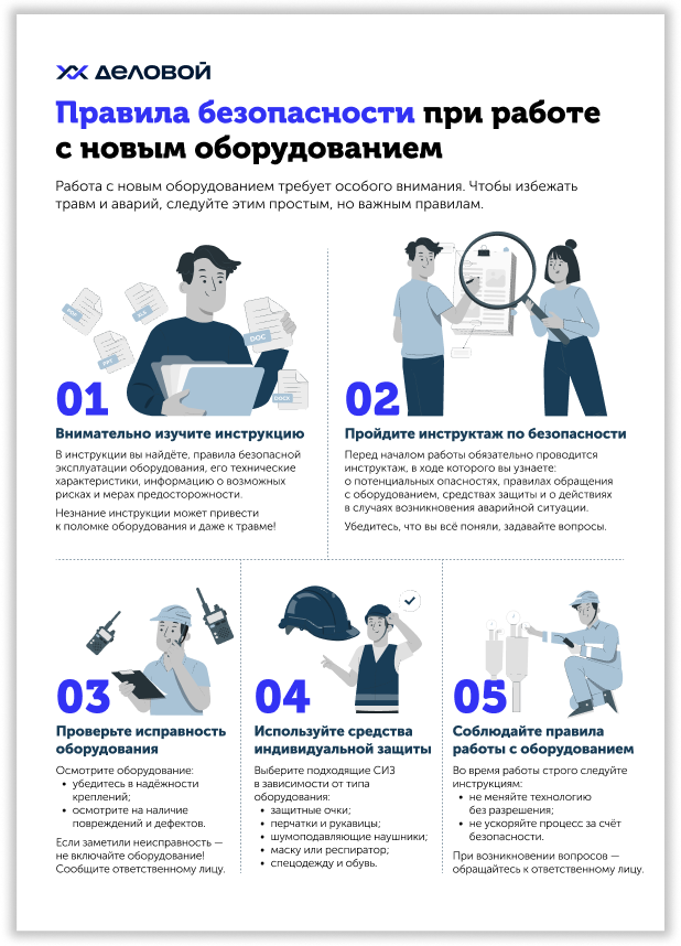 Чем полезны: за счёт наглядных иллюстраций привлекают взгляд, а благодаря понятной структуре и текстам легко доносят нужную информацию до любых категорий сотрудников.