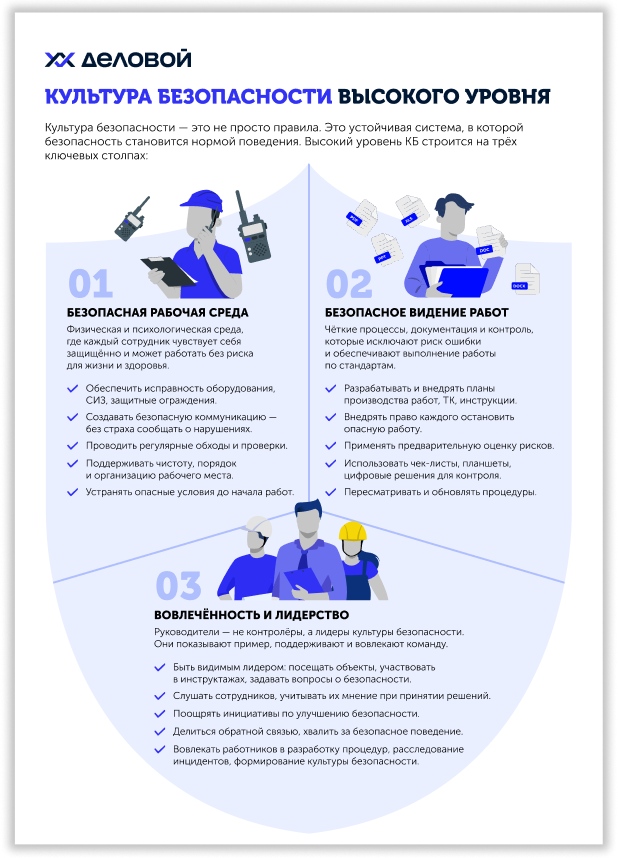 Быстро доносят нужную информацию и до простых рабочих, и до специалистов — за счёт яркой и понятной графики, а также лаконичных текстов